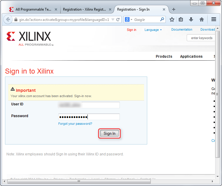 Den kann man bei www.xilinx.com erstellen. Dazu wählt man "Sign in":