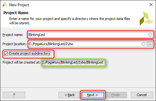 | ZYBO | C:\FpgaKurs\BlinkingLed\Zybo |