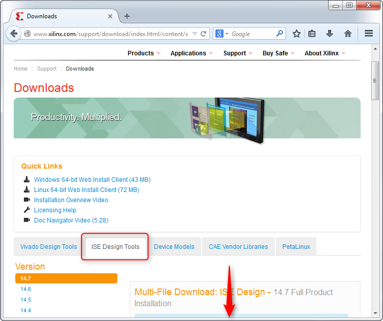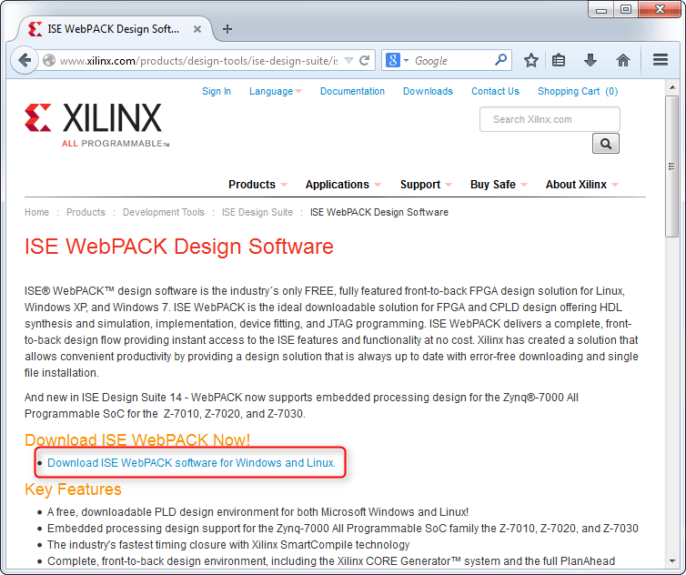 Auf der Seite www.xilinx.com aus der Gruppe Products/Design Resources „ISE Design Suite“ wählen.