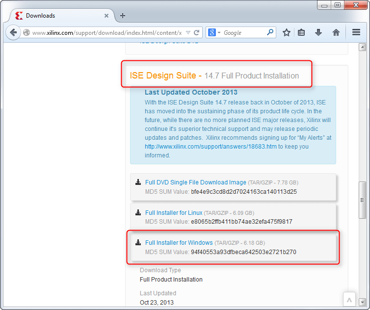 Nach unten in das Kapitel „ISE Design Suite: WebPACK Edition“ scrollen und „ISE WebPACK Design Software“ wählen.