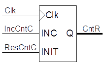signal CntR: integer range 0 to 500; signal IncCntC: std_logic; signal ResCntC: std_logic; ... p_cnt : process (Clk) begin if rising_edge(Clk) then if (ResCntC = '1') then CntR <= 0; elsif (IncCntC = '1') then CntR <= CntR + 1; end if; end if; end process;